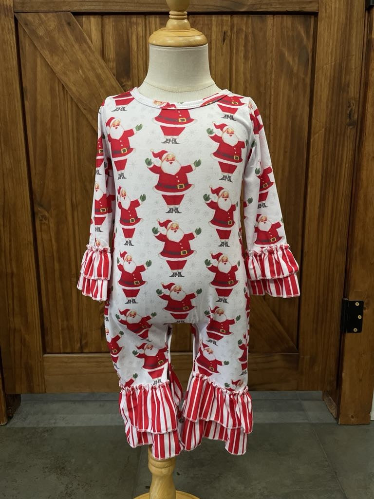 Candy Cane Santa Girls Romper