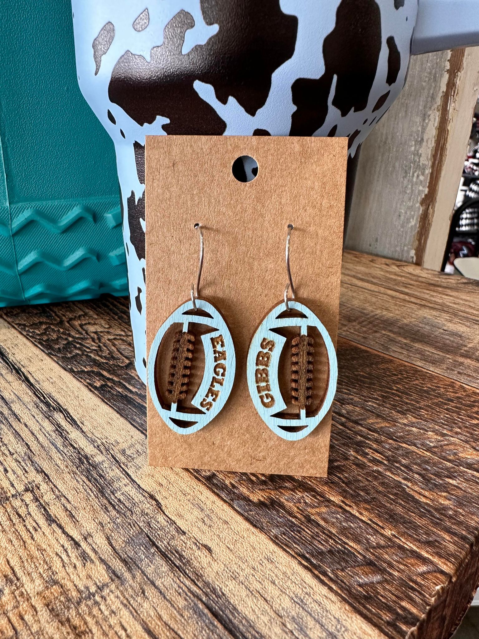 Adorable Gibbs wooden football earrings! Perfect way to support your favorite footbal player! These are nickel and lead free hardware.
