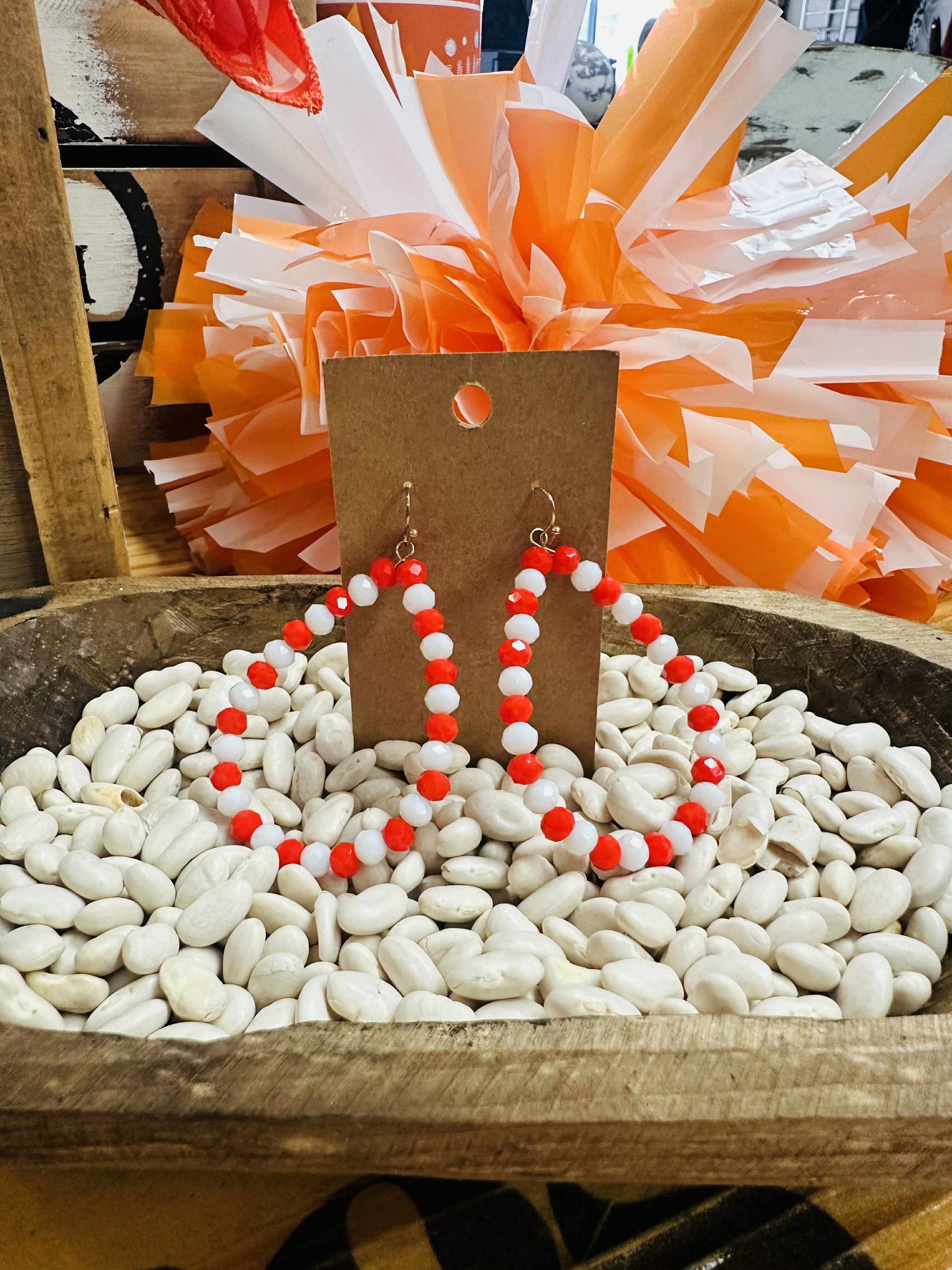 Orange & White Beaded Hoop Earrings
