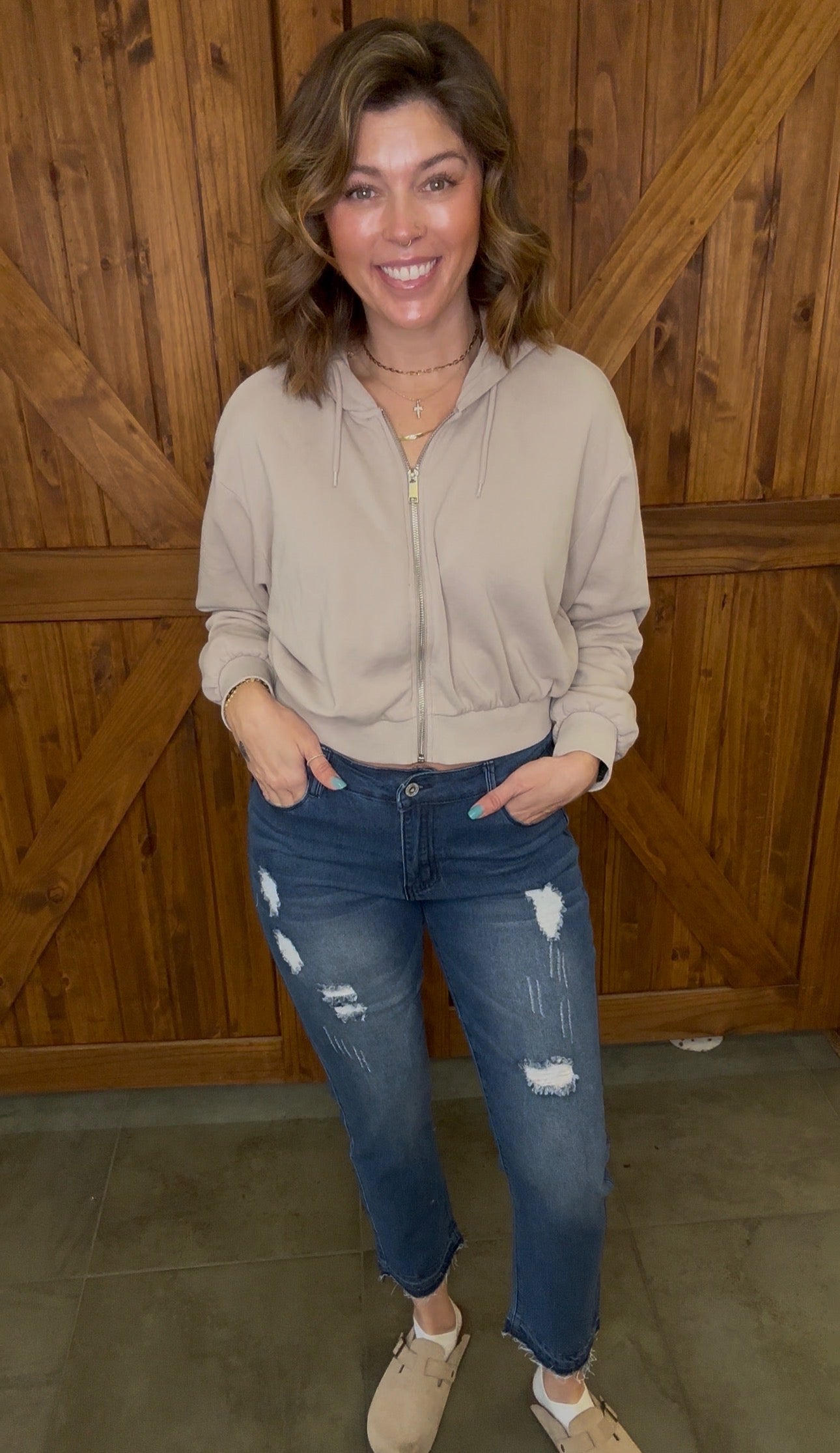 Adorable medium denim color skinny jeans !! We recommend sizing down . Model is wearing 7